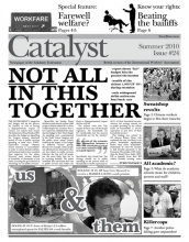 Catalyst #24 (Summer 2010)NOT all in this together : The Government’s “tough but fair” budget will hit the poorest the hardest, as well as having a disproportionate impact on women. Meanwhile, the Sunday Times Richlist reveals that the richest 1,000 people in Britain added 30% to their wealth despite the recession. |