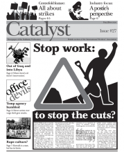 Catalyst #27 (June 2011)Stop work to stop the cuts? Why striking against the cuts makes sense on June 30 and beyond. Striking back: In-depth centrefold feature on strike action, including an illustrated timeline of strikes in Britain and a graph plotting falling strike days against rising inequality. Victory against Office Angels: Direct action solidarity wins a temp's stolen wages. This year's war: From Iraq to Libya - where there's oil there's 'humanitarian intervention'. Download as a PDF file or read online. |
